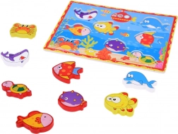 Het spel is een geweldige training voor geduld en oog-handcoördinatie. Kinderen koppelen de vormen aan de bijpassende afbeeldingen, versterken hun concentratie en breiden hun woordenschat uit met namen van dieren zoals vis, haai, krab en schildpad.