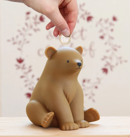 Schattige spaarpot in de vorm van een grote bruine beer van A Little Lovely Company helpt kinderen hun eerste centjes te sparen en versiert tegelijk de kinderkamer. Hij heeft een gleuf voor muntjes en bankbiljetten en aan de onderzijde een schroefdeksel voor het eenvoudig verwijderen van geld. Ideaal als designaccessoire voor de kinderkamer of speelruimte.