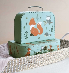 A Little Lovely Company set van twee kartonnen kinderkoffertjes met bosdierenmotief – Vriendjes
