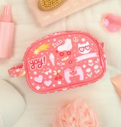 Stijlvolle en functionele toilettas voor kinderen met speels “GRL PWR”-design, hartjes en vrolijke motieven. Dankzij de compacte afmetingen 20,5 × 14 × 9,5 cm past hij in zowel rugzak als koffer en biedt toch voldoende ruimte voor alle hygiënebenodigdheden.