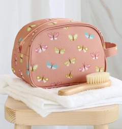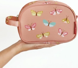 De stijlvolle A Little Lovely Company toilettas met schattige vlindertjes maakt elk kind blij. Dankzij de compacte afmetingen past hij gemakkelijk in een rugzak of reistas, terwijl hij toch voldoende ruimte biedt voor shampoo, zeep, tandenborstel en tandpasta.