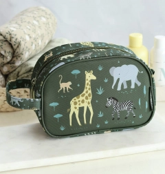Schattige kindertoilettas van A Little Lovely Company met een patroon van savannedieren, ideaal voor uitstapjes, kamp en vakantie. Voorzien van een ruim hoofdvak, ritssluiting en een praktische lus voor eenvoudig dragen of ophangen. Houdt shampoo, zeep, tandenborstel en tandpasta netjes bij elkaar.