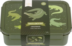 Verras kinderen met een stijlvolle lunchbox met krokodillenmotief. De ruime inhoud van 1,2 l biedt plaats aan fruit, sandwiches en kleine snacks, terwijl de praktische uitneembare inzet met 2 vakken alles gescheiden en vers houdt. Het veilige klikdeksel voorkomt ongewenst openen in de rugzak.
