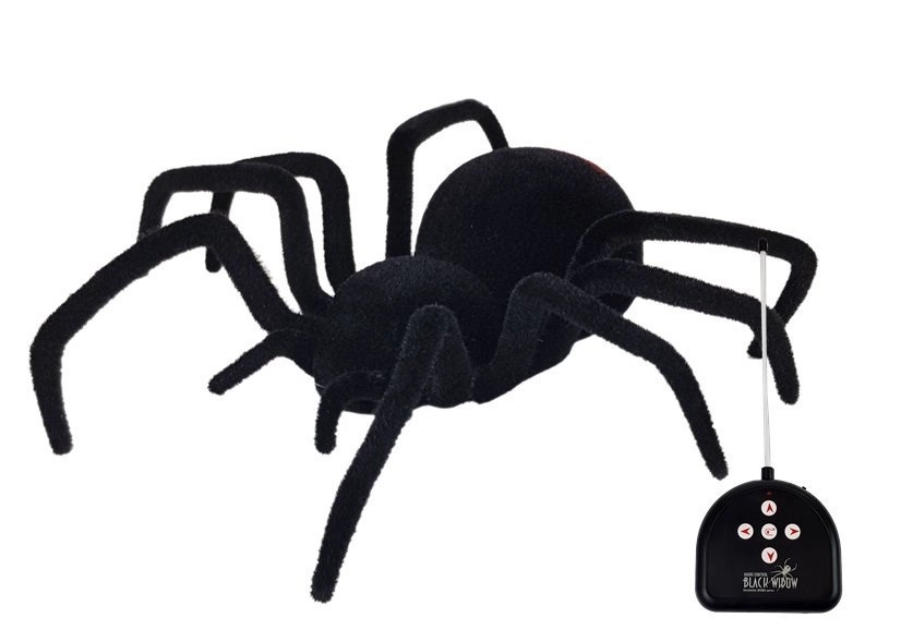 De meeste mensen houden, zoals we weten, niet van spinnen. Wanneer ze een spin zien, raken de meesten in paniek en proberen hem uit hun omgeving te verwijderen. Als je denkt dat je niet bang bent voor spinnen en je in de familie iemand hebt die panische angst voor deze wezens heeft, kun je kijken hoe die persoon reageert op onze kleine spin. De Zwarte Weduwe is onmisbaar wanneer we een grap willen uithalen of willen laten zien hoe realistisch een op afstand bestuurbare spin kan bewegen. De spin is echt enorm. De romp zelf is 18 cm lang en daaruit steken 8 lange poten. Dankzij de beweeglijke poten beweegt de spin zich uitzonderlijk realistisch. De Zwarte Weduwe is met buitengewone zorg en realisme vervaardigd. De spin is bedekt met een speciaal, harig materiaal dat een echte spin geweldig nabootst. Het griezelige uiterlijk wordt aangevuld door de felblauwe, lichtgevende ogen van de spin. Bibber mee, klasgenoten!