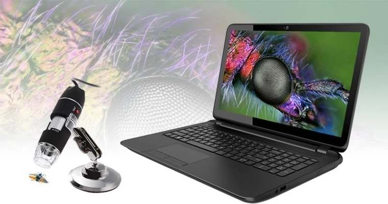 In de verpakking zit professionele software voor de computer, waarmee u foto’s kunt maken en video’s kunt opnemen. Dankzij de compacte afmetingen is de microscoop ook ideaal voor reizen met een laptop.