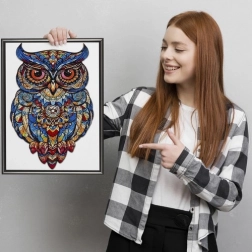 De houten legpuzzel valt op door de hoge afwerkingskwaliteit – elk stukje is nauwkeurig met laser uitgesneden en past perfect. Na het leggen krijg je een indrukwekkende, kleurrijke interieurdecoratie in de vorm van een uil met een onregelmatige contour. De puzzel is gemaakt van duurzaam houten multiplex en kan daardoor veelvuldig gelegd en langdurig gebruikt worden.