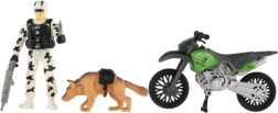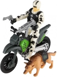 Deze militaire actieset biedt alles voor spannend spel: een gedetailleerde groen-zwarte motor, een actiefiguur van een soldaat in tactische uitrusting, een trouwe Duitse herder en een set wapens en accessoires. Kinderen kunnen hun eigen missies, trainingen en reddingsacties bedenken en zo hun fantasie en fijne motoriek ontwikkelen.