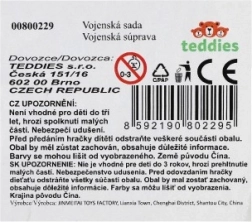 De set in een doos van 27 × 18 × 12 cm bevat een straaljager, een soldaat en accessoires – het perfecte cadeau voor jonge liefhebbers van legerverhalen.