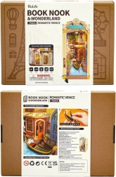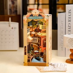 Haal een stukje Italië in huis met de gedetailleerde boekensteun Romantic Venice. Dit DIY-model vangt de charme van Venetië met een gondel, kanaal en historische architectuur. Dankzij LED-verlichting, het realistische watereffect van transparant plastic en een stofdichte afdekking aan de voor- en bovenkant is het ideaal als stijlvolle decoratie én cadeau. Monteren gaat zonder lijm met klikonderdelen, dus makkelijk en leuk.