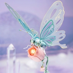 Duik in de wereld van creativiteit en natuur met deze prachtige mechanische 3D-bouwset van een vlinder. Deze gedetailleerd uitgewerkte vlinder fascineert met zijn bewegingen en subtiel lichteffect. De vlinder heeft bionische vleugels die bewegen als in het echt, terwijl de bloeiende basis met rozenmotief wordt verlicht met een gouden gloed.