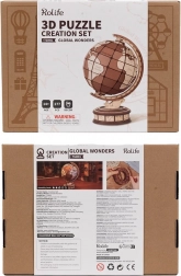 Deze 3D houten puzzel Rolife Globe zal je fascineren met een historisch ontwerp en een constructie die een klassieke globe simuleert. Het is niet alleen een stijlvolle interieuraccessoire, maar ook een geweldig hulpmiddel voor de ontwikkeling van logische en motorische vaardigheden. Ontdek wonderen zoals sterrenbeelden en astronomische symbolen geïnspireerd door het Astronomisch Uurwerk van Praag.