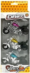 Deze set van drie realistische mini-motoren biedt veel speelplezier en is een mooie uitbreiding van de verzameling. Dankzij de combinatie van metalen en kunststof onderdelen zijn de modellen stevig en duurzaam, met fraaie details – van het stuur en zadel tot aan de ‘verchroomde’ accenten. Door het compacte formaat liggen ze perfect in kinderhanden.