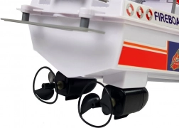 De op afstand bestuurbare reddingsboot heeft een speciale constructie die voorkomt dat er water naar binnen komt. De startknop bevindt zich op het dak van de boot. Hij is bedoeld voor reddingsoperaties op zee en is tot in elk detail perfect nagebootst. Hij heeft twee onafhankelijke motoren, waardoor hij wendbaar, snel en betrouwbaar is. Zendt op een frequentie van 27 MHz. De afstandsbediening heeft de vorm van het stuur van een echte boot. Besturing vooruit, achteruit, naar links en naar rechts is mogelijk. Bovendien is er in de set een antenne om het bereik te vergroten.