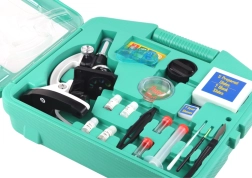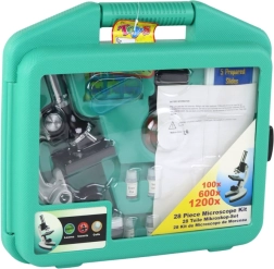 .Uw kleine wetenschapper kan voortaan overal de natuur onderzoeken dankzij de draagbare koffer met alle benodigde uitrusting. Een geweldige manier om een kind kennis te laten maken met de wereld van wetenschap en natuur. Hij of zij kan ontdekken hoe een krantenfoto, een blad, een vinger of haar eruitziet onder vergroting. Voorzien van instelbare scherpstelling. Met de microscoop, bedoeld voor het observeren van alledaagse voorwerpen, worden de geheimen van de kleine wereld en de microbiologie onthuld.