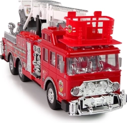 Dit gedetailleerd uitgewerkte model van een brandweerwagen biedt kinderen een authentieke ervaring van reddingsacties. De rode uitvoering met zilverkleurige accenten, functionele verlichting en geluidseffecten vallen meteen op. De hoofdrol is weggelegd voor de uitschuifbare en kantelbare ladder met 360° rotatie, waarmee hoogtes tot 44 cm bereikt kunnen worden.