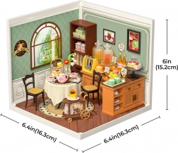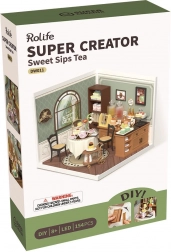 De miniatuur Zoete Theesalon is ideaal wanneer je zin hebt in stijlvolle ontspanning in een omgeving met een antieke uitstraling, compleet met een rond tafeltje met kanten tafellaken, kopjes en schoteltjes vol zoetigheden. Eenvoudige montage zonder lijm dankzij nauwkeurig uitgesneden onderdelen die eenvoudig in elkaar klikken.
