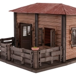 • Boerenhuisje met bed en banken.