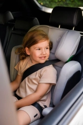 MoMi MEI is een modern autostoeltje voor lengteklasse 100–150 cm, dat eenvoudige installatie via ISOFIX combineert met maximale bescherming dankzij versterkte zijdelingse bescherming en een drielaagse, diepe hoofdsteun. Dankzij 9 verstelniveaus groeit het mee met het kind en houdt het hoofd en nek in een veilige positie, ook tijdens langere ritten.