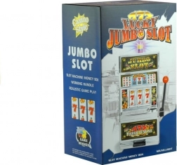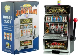 Hoe werkt de Jumbo-automaat? Het enige wat de jonge speler hoeft te doen, is een munt op de juiste plek leggen en aan de hendel aan de zijkant van de automaat trekken. Zodra de automaat in beweging komt, draaien drie rollen met typische casinopictogrammen. Verschijnt er een winnende combinatie, dan komen de munten uit de automaat – zo niet, dan krijgt het kind ze terug bij de volgende poging. De munten kunnen ook handmatig uit de automaat worden gehaald. Plezier is niet de enige functie van deze automaat – in het grote speelgoedhuisje zit een spaarbox verborgen. Aan de achterzijde van de automaat zit een gleuf voor munten, zodat je kind verstandig met zijn winst kan omgaan.