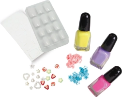 Maak je eigen schoonheidssalon gewoon thuis! Deze creatieve 3D nagelset biedt alles voor snelle en leuke nageldecoratie: 3 gekleurde nagellakken, 12 kunstnagels, 12 stickers, 2 soorten glitters en 19 stuks 3D-versieringen. Dankzij de eenvoudige handleiding is een prachtige thuismanicure zelfs voor beginners eenvoudig. Geweldig voor kinderen vanaf 6 jaar.