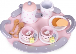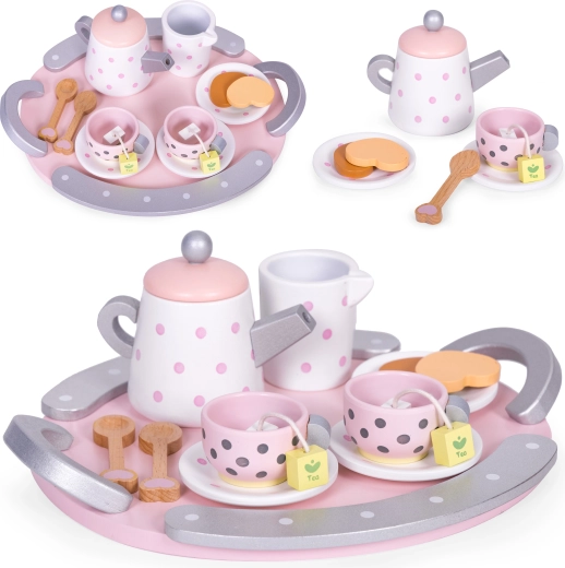 Dankzij de set kan een kind de rol van volwassene spelen en gasten uitnodigen voor een heerlijke thee en zoete versnaperingen. Naast plezier ontwikkelt uw kind verbeeldingskracht en fijne motoriek en leert het ook thee bereiden en tafelmanieren kennen.