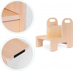 Het sterke 12 mm multiplex, de afgeronde randen en twee ruime treden geven kinderen vertrouwen bij dagelijks gebruik in zowel de keuken als de badkamer.