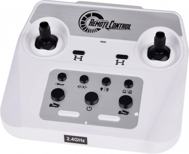 Vloeiend rijden vooruit/achteruit en sturen, aan/uit voor lichten en geluiden, afstelling van de toespoorhoek van de vooras, schakelaar voor zwaailichten en laadbak.