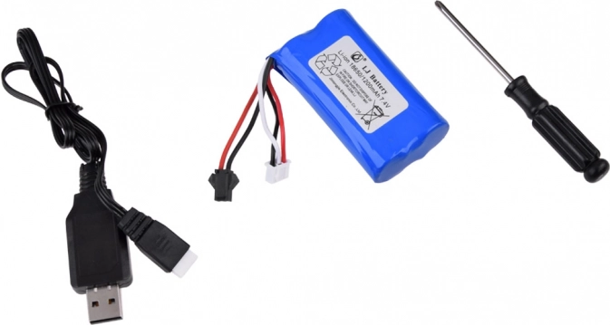 - Complete set – voertuig, 2,4 GHz controller, 7,4 V accu, USB-lader en schroevendraaier.
