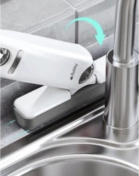 Mini mop Ruhhy is uitgerust met een kliksysteem dat ervoor zorgt dat de opzetstukken stevig bevestigd blijven. Ideaal voor precisie reiniging zelfs op moeilijk bereikbare plaatsen dankzij flexibele armen en zijwaartse beweging.