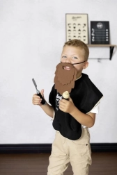 De kappersset Mijn eerste baard is perfect voor kleine enthousiastelingen die de kunst van het kappersvak willen ontdekken! Dankzij de vilten baarden met klittenbandsysteem kun je vele verschillende combinaties van vormen en lengtes maken. Kinderen kunnen zich vermaken met rollenspel en het nabootsen van een echte kappersomgeving.