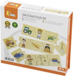 Ontdek de leuke houten puzzels van VIGA, die kinderen vanaf 18 maanden kennismaken met de wereld van werk. De set bevat 24 stukjes waarmee kinderen 6 beroepen koppelen aan de juiste gereedschappen en voertuigen. Het spel stimuleert de fijne motoriek, logisch denken, aandacht en oog-handcoördinatie. Gemaakt van beukenhout en geverfd met niet-giftige verf – veilig, duurzaam en ideaal als cadeau.
