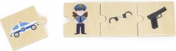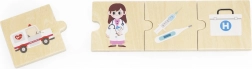 De educatieve set van VIGA bevat 24 houten stukjes met mooie illustraties, waarmee kinderen op speelse wijze kennismaken met 6 beroepen – zoals brandweerman, arts, politieagent, landbouwer, bouwer of bakker – en daarbij de juiste gereedschappen en voertuigen toewijzen. Kleurrijke afbeeldingen ondersteunen het leren van nieuwe woorden en vergroten de woordenschat.