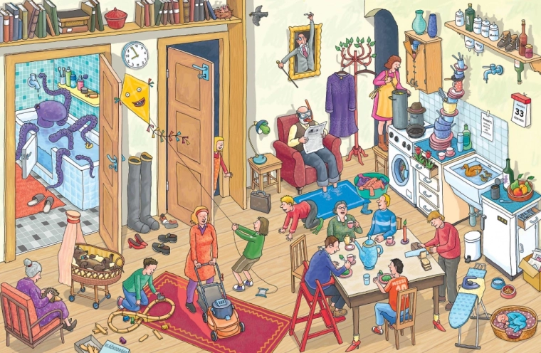 Van een octopus in bad tot een grasmaaier op het tapijt – elke scène zorgt voor lachbuien en vragen. Perfect om aandacht en woordenschat te trainen.