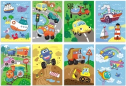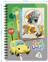 Creatief blok met vervoersthema’s voor eindeloos plezier: vul het waterpenseel, strijk over de pagina en zie hoe levendige kleuren en details van auto’s, treinen en vliegtuigen verschijnen. Na het drogen keren de illustraties terug naar de oorspronkelijke staat en kunnen kinderen opnieuw schilderen.