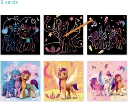 Ontdek het plezier van creatief bezig zijn met deze kras-afbeeldingen die uitnodigen om verborgen kleuren te onthullen. De set bevat drie verschillende kleurrijke afbeeldingen geïnspireerd door My Little Pony en een speciaal kraspennetje: