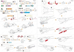 Onderdelen worden verbonden met lipjes en openingen, waardoor er geen lijm nodig is voor de montage. Het gebruik van fijne tangetjes wordt aanbevolen voor nauwkeurige buigingen.