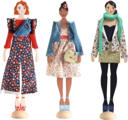 - 3 poppen met houten standaarden om ontwerpen te presenteren.