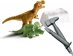 2 dinosaurusfiguren in een blok, 2 graafgereedschappen, gebruiksaanwijzing