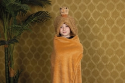 Geniet van de combinatie van plezier en comfort met deze verwarmende deken met capuchon. Dierenthema-ontwerp nodigt uit tot spelen en bevordert de verbeelding van kinderen. Gemaakt van superzacht fleecemateriaal, dat zorgt voor comfort en gezelligheid.