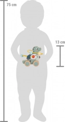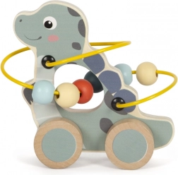 De dinosaurus biedt spel aan met duwen op wielen en een interactieve doolhof met kralen, wat de fijne en grove motorische vaardigheden van kinderen ontwikkelt.