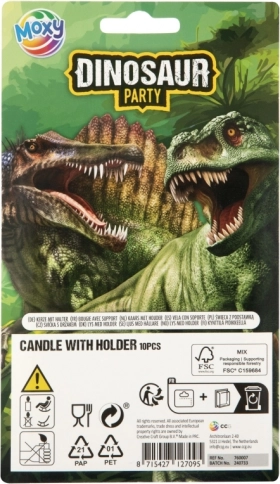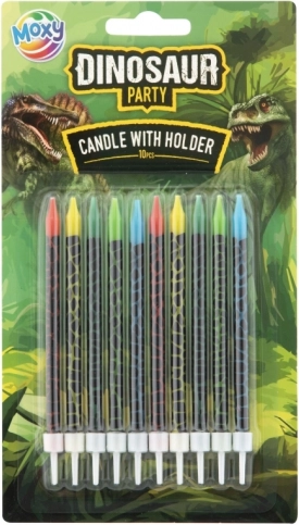 Creëer de perfecte sfeer op het feest met thematische kaarsjes met dinosaurussen. Dankzij de meegeleverde houders plaats je ze gemakkelijk in de taart, waar ze stevig blijven zitten en mooi opvallen. Het product is een decoratie – niet bedoeld als speelgoed.