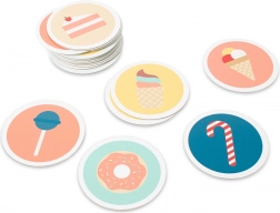 Ontdek het leuke grote memoryspel met snoepjes, dat de geheugen, concentratie en het logisch denken ontwikkelt. Extra grote ronde kaarten zijn ideaal voor kleine kinderhandjes en bieden een competitieve uitdaging voor het hele gezin. Perfect spel voor 2–6 spelers vanaf 3 jaar.