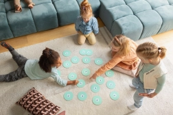 Kartonnen kaarten met een diameter van 12 cm liggen goed in de hand en zijn gemakkelijk om te draaien – ideaal voor kleuters.