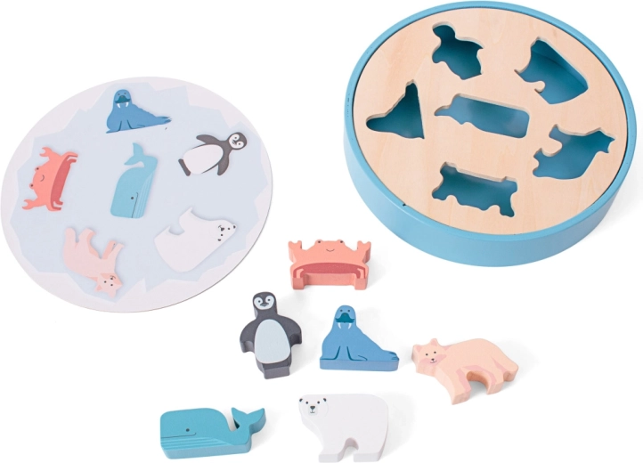 Deze hoogwaardige houten insteekpuzzel met dieren (zeehond, ijsbeer, krab, pinguïn, vos en orka) is een ideale eerste puzzel voor kleine ontdekkers. De stukjes zijn stevig, liggen prettig in kinderhanden en dankzij de duidelijke contouren en illustraties zijn ze makkelijk op hun plek te leggen.