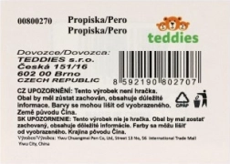De pen bevat 6 gekleurde inktvullingen - rood, geel, paars, blauw, groen en zwart.