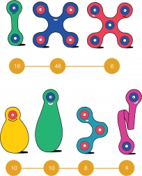 - Flexibele onderdelen voor 2D/3D-constructies en multisensorisch spel