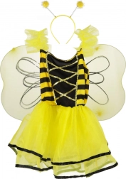 Het kostuum bestaat uit een jurk, vleugels en een diadeem met antennes, wat zorgt voor een complete uitstraling van je kleine bijtje.