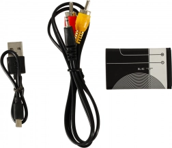 Inclusief een accu 3,7 V 1200 mAh, USB-kabel voor het opladen en een jack/AV-kabel. Sluit een koptelefoon aan via de 3,5mm jack en speel overal.