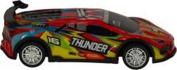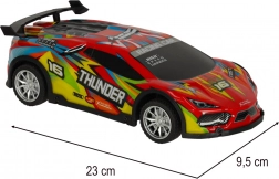 De aantrekkelijke carrosserie met de opdruk THUNDER, racestickers en LED‑lichten versterkt het gevoel van snelheid en maakt de auto ook in schemerlicht onmiskenbaar.