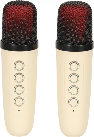 Karaokeset met Bluetooth‑luidspreker 10 W, 2 draadloze microfoons en RGB‑LED – crème